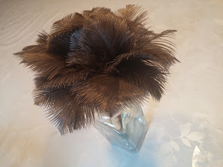 Ja minä sitten. Siivoan, kun pölyä on liikaa katsella ja väistellä. ;) Pölyjen pyyhintä on yksi ikävimpiä hommia, kun meilläkin on talon "historiaa" näkyvillä. Mutta nyt on niin nätti pölyhuiska, että sitä voi pitää vaikka kukkana pöydällä ja ohimennen käyttää pölyjen pyyhintään. Ostin strutsinsulkaisen huiskan Turun Kädentaitomessuilta (15 € muistaakseni).